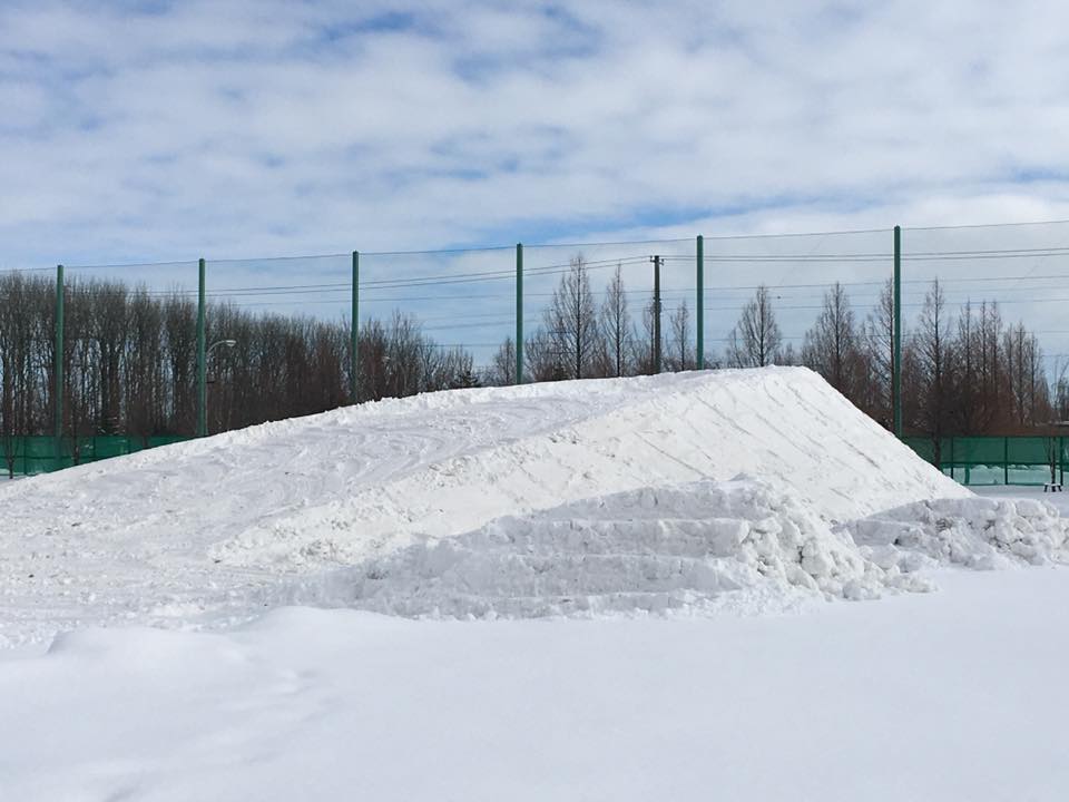 グランドの雪だけでは足りないので、大型ダンプ百数十台分の雪を搬入。ユンボで作成しギリギリ間に合いました。